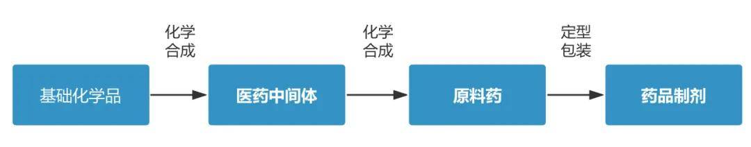 医药中间体是指在化学药物合成过程中制成的中间化学品,属精细化工产品。通常为高技术密集、高附加值的专用化学品。医药中间体的上游是基础化学原料,下游是化学药品原料药和制剂。其中,医药中间体、化学药品原料药、化学药品制剂形成了化学药品制造业。