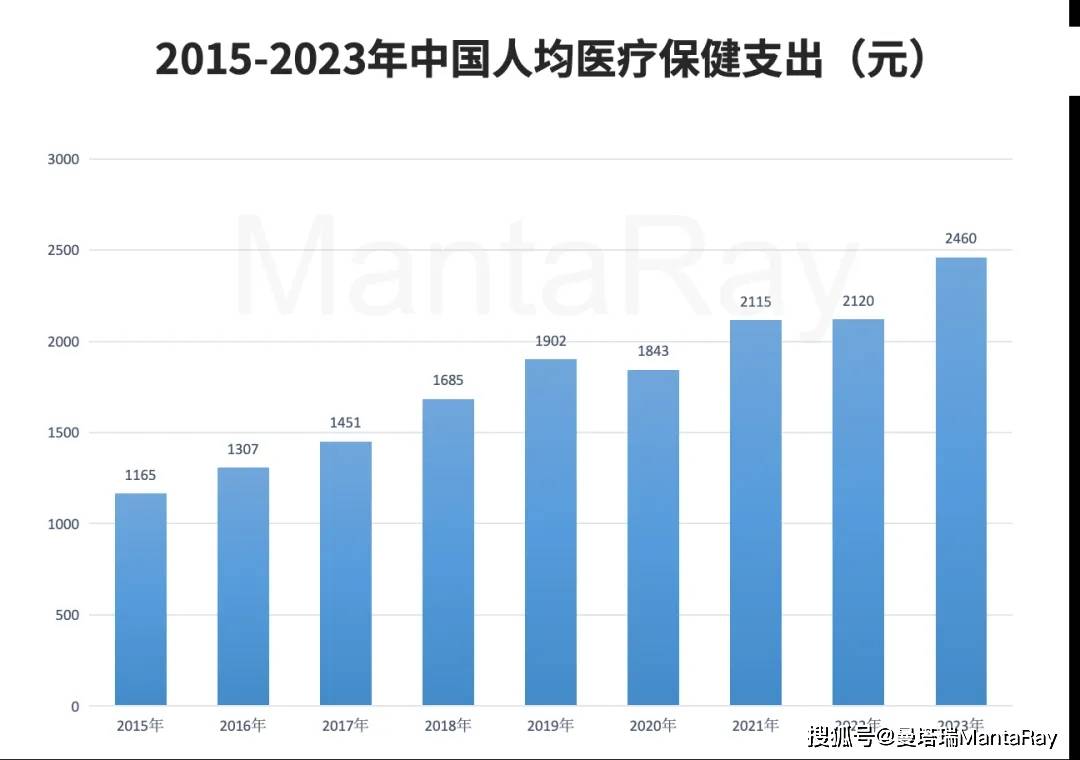 另一方面,2015-2023年我国人均医疗保健支出整体呈上涨趋势。2022年我国人均医疗保健消费支出为2120元,2023年为2460元。我国经济持续向好发展,人们消费能力和消费水平也稳步提升。人们健康意识的强化和经济能力的增强也将助利于医药中间体行业的发展。