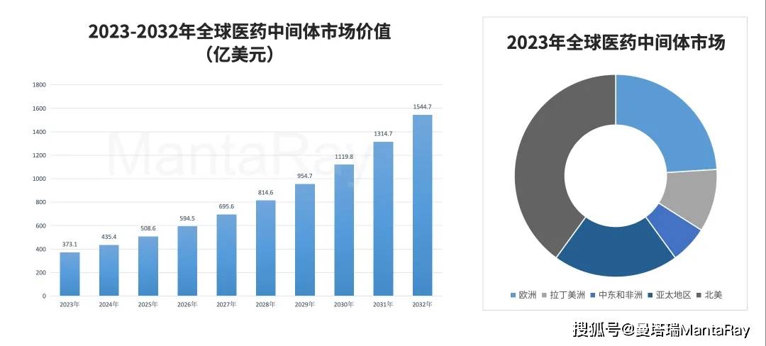 据Precedence Research报告,2023年全球医药中间体市场价值为373.1亿美元,预计到2032年将达到1544.7亿美元以上,2023年至2031年复合年增长率将达到4.8%。