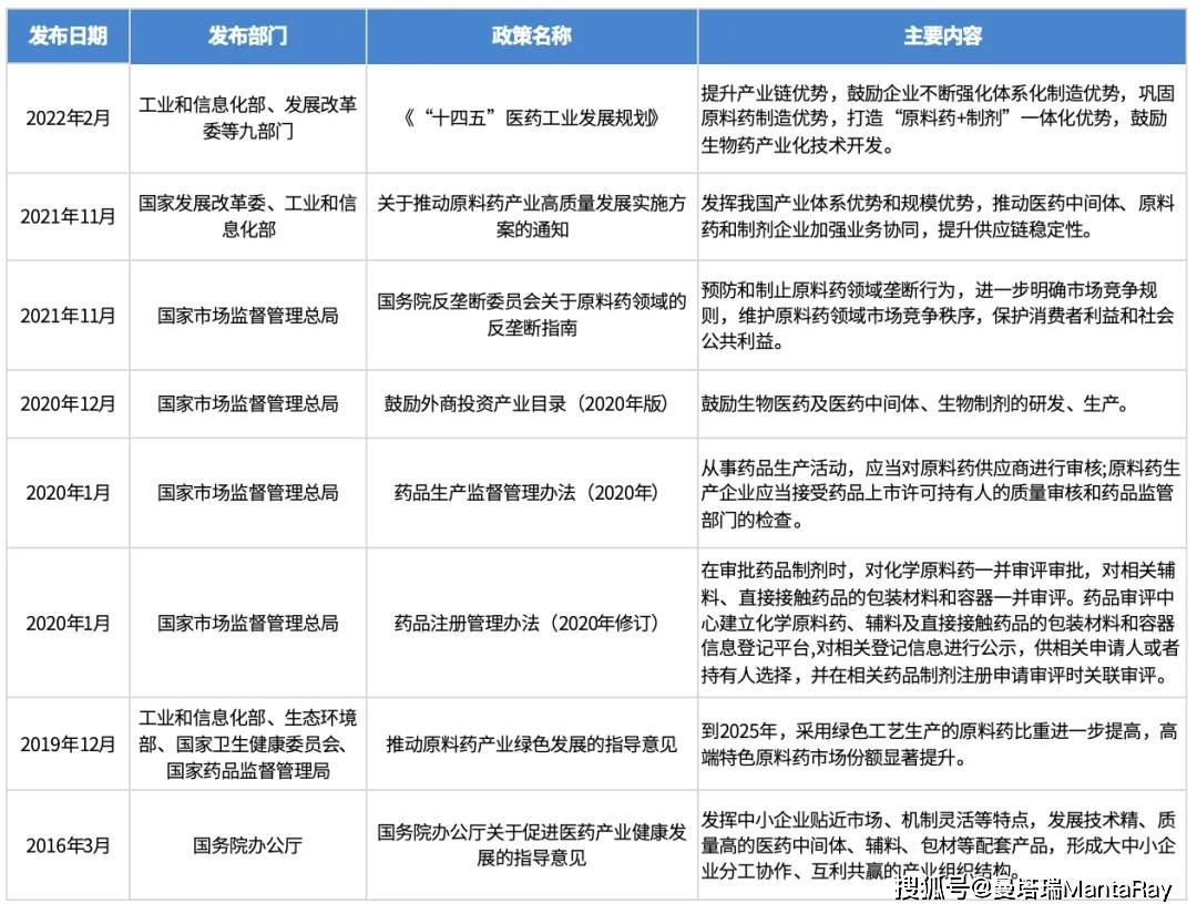 医药行业具有较强的政策导向特点。近年来,我国医药中间体行业受到各级政府的高度重视和产业政策的重点支持。国家陆续出台了多项政策,鼓励医药中间体行业发展与创新,《药品生产监督管理办法(2020年修订)》、《药品注管理办法(2020年修订)》、《我国国民经济和社会发展十四五规划和2035年远景目标纲要》、《“十四五”医药工业发展规划》及《推动原料药产业高质量发展实施方案》等多项行业发展规划与产业政策的出台,有效促进了行业产业结构调整和优化升级。相关政策扶持规范企业,淘汰落后产能,提高产业集中度,改善竞争环境,引导行业规范化、有序化发展,增强龙头企业核心竞争力,为医药中间体行业的科学可持续发展营造了良好的政策环境。